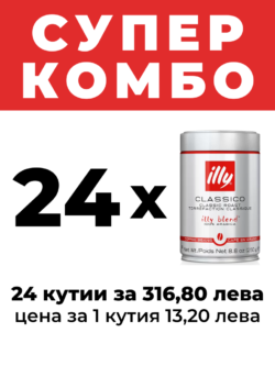 illy CLASSICO КАФЕ НА ЗЪРНА 24 КУТИИ ПО 0.250 КГ.