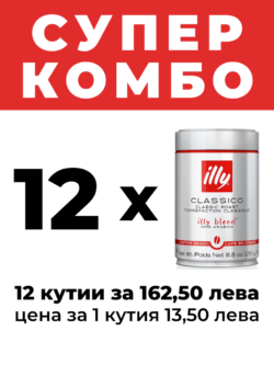 illy CLASSICO КАФЕ НА ЗЪРНА 12 КУТИИ ПО 0.250 КГ.