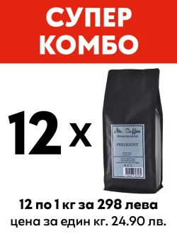 MR.COFFEE PRESIDENT КАФЕ НА ЗЪРНА 12 БРОЯ ПО 1 КГ. – СУПЕР КОМБО ПРЕДЛОЖЕНИЕ